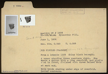 | Description: | From a lekanis lid. Shiny black beneath. A woman standing three-quarters right. She wears a chiton with a long overfold, and girdle tied in front, finished with three raised dots at each end. Note brown shading under edge of overfold. Relief contours. | |