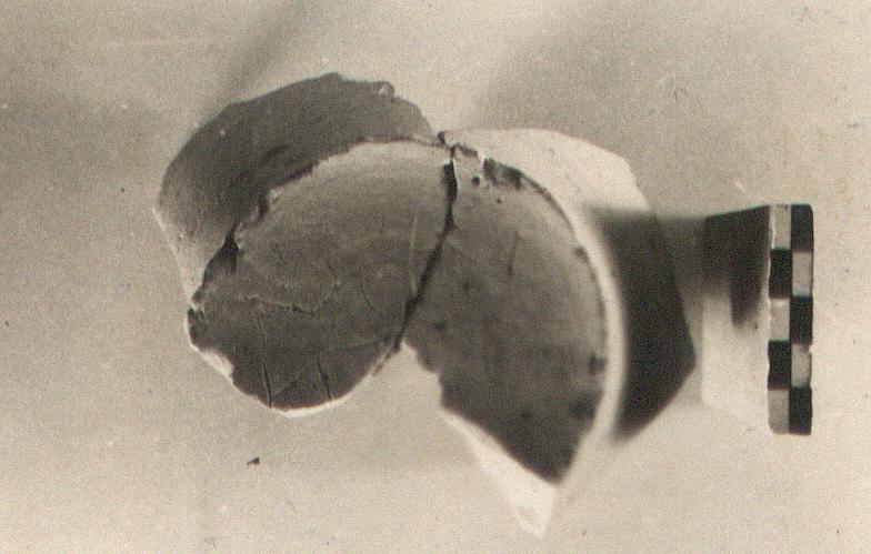 | Description: | Part of the flat bottom of a plain unglazed pot. Incised on the bottom: <graphic> Light red clay, buff surface. | |