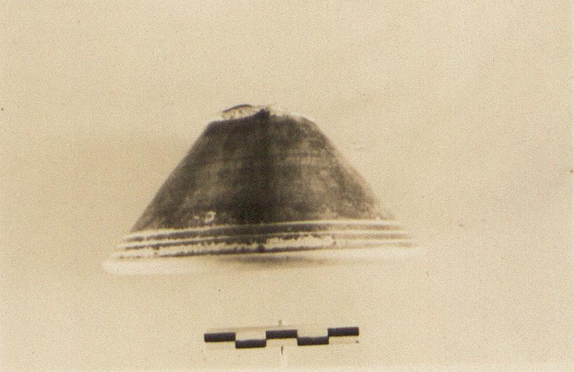 | Description: | Conical base, broken from protogeometric skyphos; metallic black glaze; triple reserved band around bottom. | |