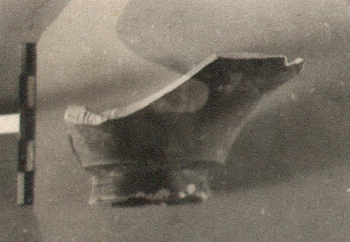 | Description: | Base complete, and profile to just below rim, which is chipped. A small Pergamene bowl with high base and flaring sides, nicked just below the rim outside. | |