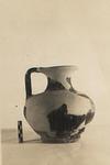 | Description: | Lip missing; body fragmentary. Restored in plaster. Ring foot and squat body; narrow neck and probably round flaring mouth. Vertical strap handle from shoulder to mouth. Thick fabric of gray clay; poor dull black glaze not reaching to the foot outside. | |