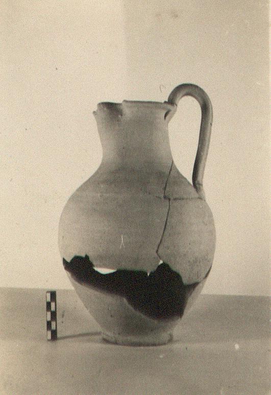 Description:   Ring foot; trefoil mouth and grooved handle.