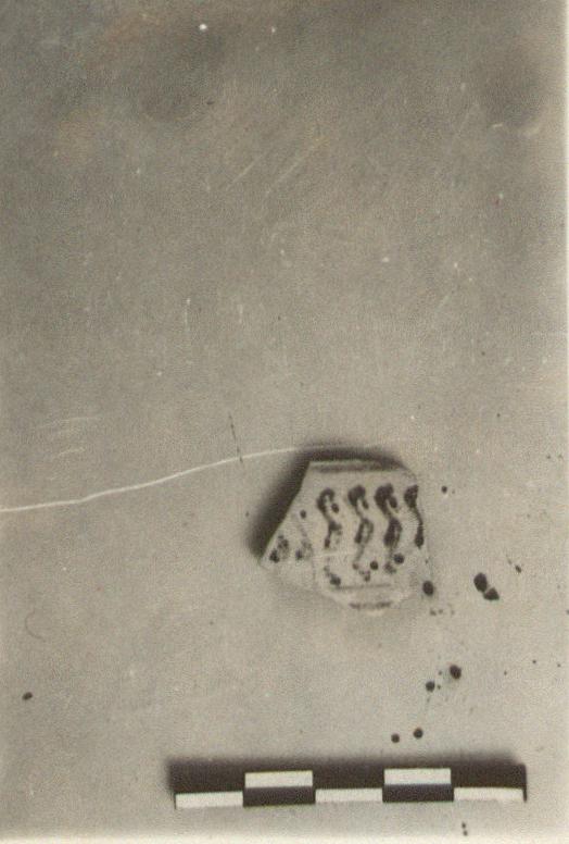 | Description: | Rim fragment. In handle zone, procession of birds to right; horizontal bands below. Brownish glaze. Protocorinthian. | |