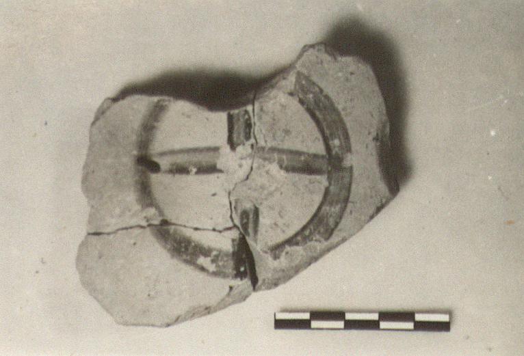Description:   Neck fragment, reserved. A four-spoked wheel.