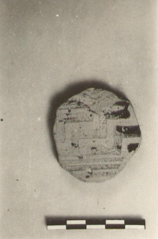 | Description: | Cut from a closed pot. Outside, part of zone of step pattern between bands. Protoattic? | |