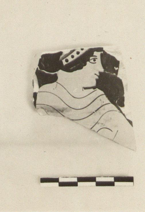 | Description: | Head and shoulders of a draped filleted woman, right. No relief contours. ADDENDA (Sept. 2020), according to Agora XXX, Calyx Krater fragment. | |