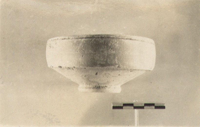 | Description: | As P 8497 (Ι 919) but rim proportionately higher. Clay, glaze and fabric the same [as P 8497] but more paint has run down onto the side walls. ADDENDA P 8497: Small, medium foot; rim nearly vertical with slightly convex profile; a single groove just below lip. Rough buff clay, some mica and impurities; matte glaze-paint, red inside, yellower and browner on outside of rim, much worn. | |