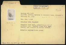 Description:   Fragment from wall, preserving a bit of inturned rim. Pendent loops with rays, leaves, and circles in relief between.