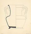 | Description: | Bits from rim and side missing. Restored in plaster. Usual shape and handles; groove above and below handles and at base of neck. On the neck, in alternate yellow and white, a garland of pendent grapes and rosettes on either side of a festoon. On the shoulder, diminishing squares beside a checkerboard. Small base. Body black glazed, much mottled with red; clay presumably Attic. | |