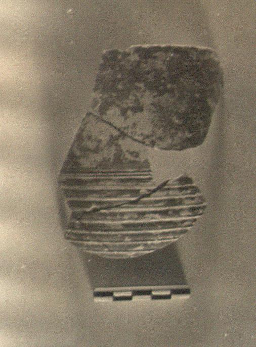 | Description: | Fragmentary; none of base preserved. Straight sides. Horizontal ribs around lower part, carefully made. Glaze peeled. Cf. P 7643 (Ι 803). Sigillata. | |