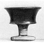 | Description: | Similar to P 8807 (Γ 2244), but much larger. Concave walls with flaring lip; flat floor; cup foot and stem. Two incised grooves around stem near base; edge of foot reserved. Pink clay; black to red glaze, peeled in places. ADDENDA P 8807: Flat circular base. Flat-bottomed bowl on stem with concave flaring side wall. | |