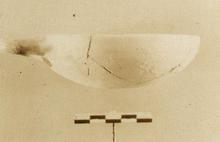 | Description: | About one-third of rim with one handle missing. Similar to P 8855 (Γ 2292). Incised on bottom: <graphic> Pinkish buff clay; dipped handles. ADDENDA P 8855: Shallow flat-bottomed bowl; two horizontal rolled handles, set barely below rim. | |