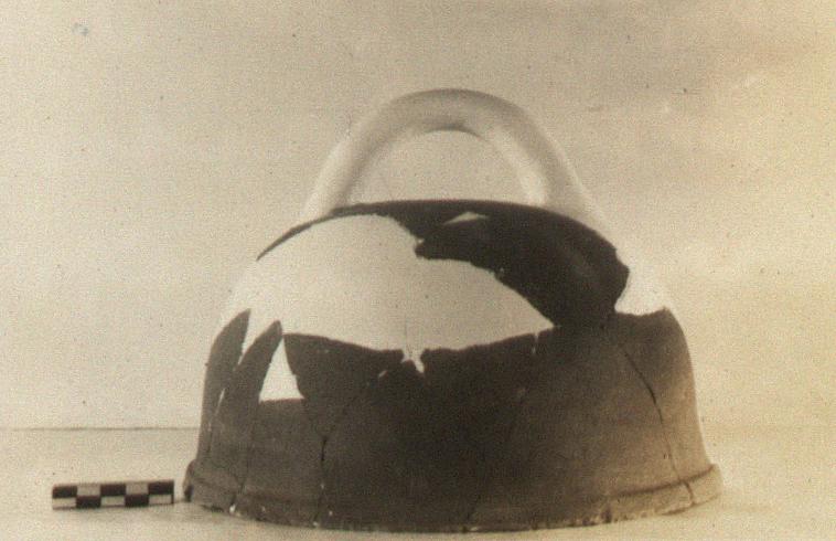 | Description: | About half of body and one handle attachment preserved; restored in plaster. Similar to P 8862 (Γ 2299); much smaller and more nearly round, with wide thickened rim (on the outside), very slightly flaring. Same fabric as P 8863. Burning inside. Probably wheelmade and then distorted. ADDENDA P 8862: Large domed cover, elliptical at the rim, shaped like a cowbell; basket handle on the top, running with the major axis of the pot. Rim very slightly rolled outward. Coarse red cooking-pot clay with white grits, gray in places. Cf. Agora XII, no. 2021. | |
