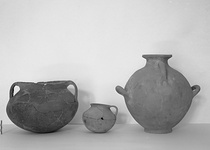 Description:   Body fragments missing; restored in plaster. Similar in shape and fabric to P 8874 (Γ 2311), but much larger and without spout.