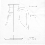 | Description: | Large one-handled jug on very low ring foot; flaring lip set at a sharp angle to the neck; narrow neck tapering towards top; broad band handle, grooved, from below lip to middle of shoulder. Narrow band of incised lines on neck, just below lip. Buff clay. Smooth buff slip, worn. ADDENDA Central Italian (version of figulina clay), JWH, 1998. | |