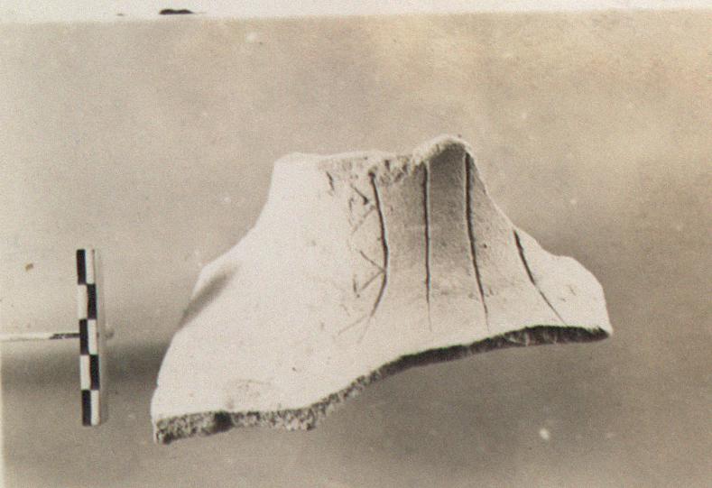 | Description: | Fragment from neck and shoulder. At base of neck, deeply scratched: <graphic> Fabric similar to P 9239 (Ι 1021). Inside coated with pitch. | |