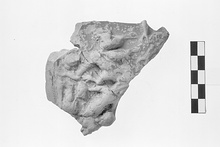 | Description: | From the wall of a bowl. Confused struggle, involving two men and more than two animals, above foliage. Red clay; red glaze much worn. ADDENDA Pergamene(?) relief ware (Hellenistic) [JWH]. | |