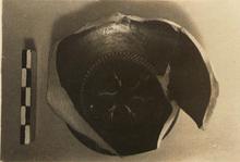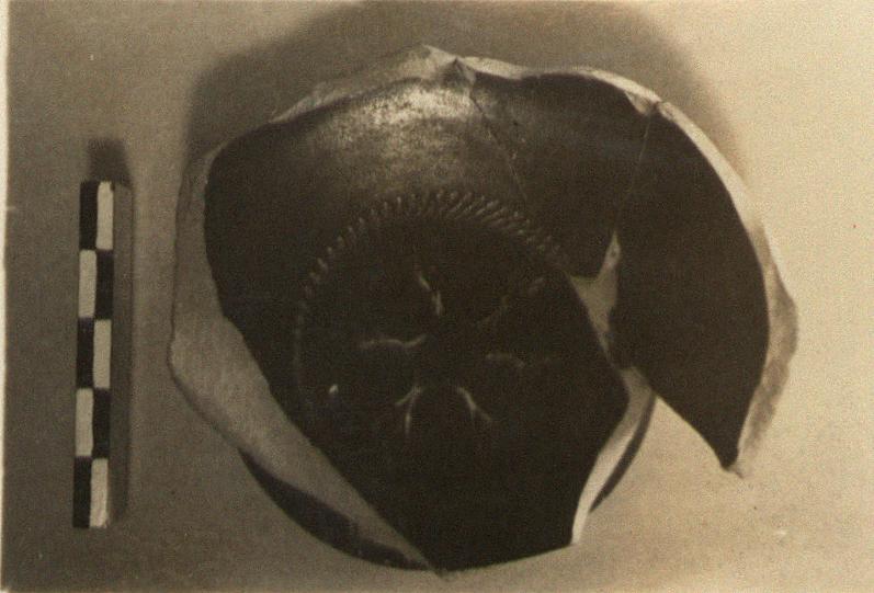 Stamped decoration: on the floor, six linked palmettes surrounded by a narrow band of heavy rouletting.