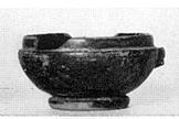 | Description: | Handle and chips from lip missing. Base ring; lip set in to receive cover; one horizontal strap handle. Black glaze, chipped, inside and out, except for base ring, bottom and scratched line at base of lip. | |