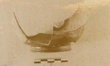 | Description: | Lower part only preserved. Moulded base ring, with small reserved circle with dotted circle on bottom. Stamped decoration: linked palmettes outside of circle of eggs. In spots the stamp has broken through the glaze. Glaze fired in part grayish. | |