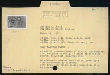 | Description: | a) and b) preserve parts of rim; c) the complete foot and parts of walls. A plate of very fine fabric; ring foot, inturned rim. Restored in plaster. An elaborate conventional design, possibly a bird surrounded by rinceaux. Fine red clay; yellow glaze; thin white slip on exterior. | |