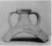 | Description: | Mended from many pieces. Most of neck and shoulder preserved. Flaring lip. Broad ribbing on shoulder. Graffito on neck, at junction with shoulder. Close to shoulder: <graphic>. On opposite side: <graphic> Pale highly micaceous clay. Paler slip. Smears of something black on one handle and just below. | |