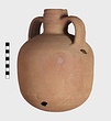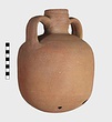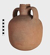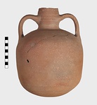 | Description: | Cracked, but complete, save for a few small holes. Rounded body; straight narrow neck with wheel ridges. Coarse reddish clay. | |