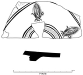 | Description: | Fragment from floor. Heavy base ring with groove at upper edge. Stamped decoration: lozenge-shaped stamps on low bases between two bands of rouletting, each band bordered by double grooves. Dark brown micaceous clay; black on bottom surface. Thin black glaze on interior. ADDENDA Ephesos-region fabric (JWH). | |