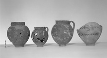 Description:   Mended from many fragments; base and much of body missing. Shape as P 9892 (Φ 294).