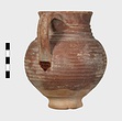 Dark red glaze on exterior, except toward base, and on most of interior.