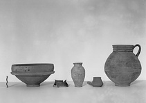 Description:   Intact. Rather roughly made. Flat bottom; plain flaring lip. Ribbing on body.