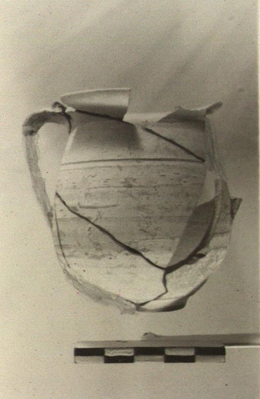 | Description: | Mended from many fragments; much missing. Shape as P 9924 (Φ 341). Pinkish clay. Dull white paint, rather worn, on exterior. ADDENDA The rest of one handle, and other fragments, found in mending. | |
