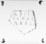 | Description: | From the wall of a heavy plain pot, broken all around. Writing on inside: <graphic> | |