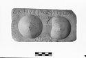 Description:   A plaque of Pentelic marble, dressed on it's face and edges. On the front two female breasts are represented in high relief. The inscription, in roughly cut characters ca. 0.013 m. high reads: