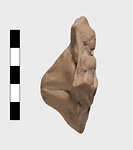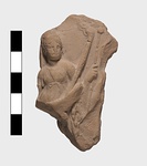 | Description: | Broken all around The figures were modeled in a high relief, on the face of a thin flat plaque, to the back of which an irregular mass of clay was attached to provide a grip. On the left hand side sits a female figure of mature years, her body turned slightly towards the left but her gaze directed rather backward toward the right. She is clad in a high girt peplos and supports a tall torch in the crook of her left arm. By her left side sat another figure grasping a tall sceptre in the right hand. Clay: fine, buff, slightly micaceous, shows no trace of paint nor of burning. | |