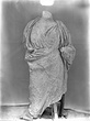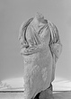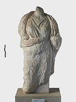 Standing female figure, in chiton and himation, somewhat over life-size. Heavy proportions and wrinkles indicated in neck suggest an elderly woman.