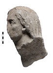 | Description: | Relief surface only preserved. Left side of face and head of woman, looking left, nose and chin missing. Veil drawn over head; pronounced wrinkles at corner of eye. Pentelic marble. | |