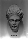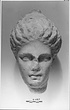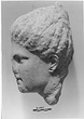 ADDENDA More like a lampadion cut than a melon cut - looks too loose and irregular. Late 4th century. Back left of head roughly chiseled with point at a sharp angle. Looks like a girl from a large gravestone, but would she have earrings? (AS 1997).