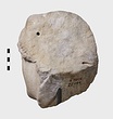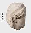 Description:   Broken off at neck; back of head (including most of the left ear) sliced off diagonally, and nose missing; surface considerably battered.