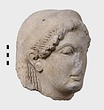Head of archaic Kore type, about life-size, with a diadem and large stud earrings. The hair escapes from under the diadem in parallel wavy strands ending in two rows of snail curls framing the upper part of the face. On the sides and back, it hangs down long behind the ears in heavy ribbon-like locks. The top of the head, where it is preserved, is slightly but carefully stippled, save for a few shallow locks, which are indicated immediately above the diadem in front.