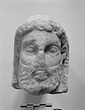 Description:   End of nose missing; broken below. Three very shallow holes perhaps for attachment, on underside of beard.