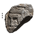 | Description: | Part of curved surface with a moderately low relief. Preserved is the middle part of a draped figure, seated right on a cushioned stool. Below the stool to the right sits a small curly-haired dog. Another similar dog is held in the figure's lap and a third (head only) looks up at the figure from in front. Pentelic marble. | |