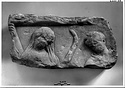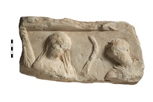 | Description: | Part of top preserved; otherwise broken. The heads and shoulders of two figures are preserved, and between them is a narrow object, a torch (?). The left-hand figure wears a veil over her head and appears to be holding an elongated object in her raised right hand. Ovolo and taenia above. Pentelic marble. | |