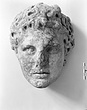 Description:   A life-sized head of a man, broken behind and at neck. Nose damaged, but features otherwise well preserved.
