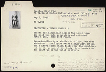| Description: | Broken off diagonally across the lower legs. The head was made separately and attached with a pin. Back left rough. Hermaphrodite of a type similar to S 1234 (ΝΝ 2578), but more elaborate. The figure wears a high-girt chiton and a heavy cloak, which falls over the shoulders and to the ground at the back. Both hands lift the skirt up to the waist in front. Island (?) marble. Cf. also S 629 (Τ 197) and terracotta types T 1808, T 3002, T 3107. | |