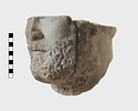 | Description: | Broken away above and behind. Preserved are the nose, mouth and chin of a life-sized bearded head. Back added from circled marbles in section Κ November 1953. Pentelic marble. Drilled for setting on base June 1950. | |