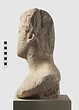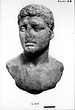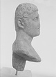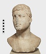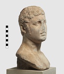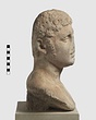 | Description: | A large piece missing at the back and left. Nose and mouth battered, ears chipped. Along the break, from the top of the head, is a vertical pinhole with traces of iron stain. The wear on front and back breaks suggests that they may be ancient. The marble somewhat stained from burning; root marks prominent on the neck. Head of a young man with close-cropped curly hair, somewhat sketchily rendered. Setting tongue rough-worked. Size and shaped of the bust Augustan. Pentelic marble. Drilled for setting June 1950. | |