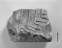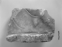 | Description: | Lower part of a statue. Preserved are the ends of five flat folds in the archaic manner, their slightly oblique vertical lines indicating motion to the left. At the left end there seems to be the indication of a foot holding back a sixth fold: curve for heel and swelling front and back very summarily rendered. Fragment flat and narrow, with drapery widening slightly towards a plinth, of which part is preserved. Workmanship very fair; surface carefully finished both at front and back. In the marble, below the lifted foot a cutting, ca. 0.03m. square in section, with drill holes in the four corners. Island marble, probably Parian. | |