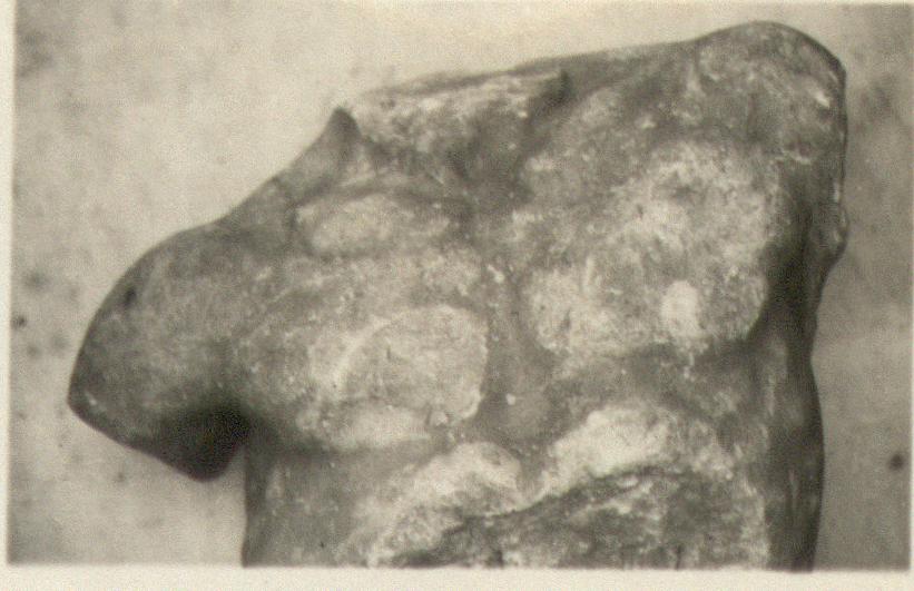 | Description: | Upper part of torso of a muscular male figure a little under life-size. Upper part of chest preserved with front starts of neck and left arm, and 0.02m. or 0.03m. of right arm. Head was inclined to lifted left shoulder; upper left arm fell close to body; right arm raised free from side. Easy three-dimension treatment of nude; muscles rendered by soft swellings all over surface except where pose would stretch skin tight. In the tradition of torso fragments of Tegea pediments. Surface rather carefully finished. Pentelic marble. | |