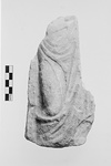 Lower part of torso and right leg (kneeling?) of draped male figure. Part of relief background preserved.